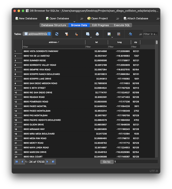 - Applied geocoding to unique addresses using Python and Google Geocoding API and stored them in SQLite database