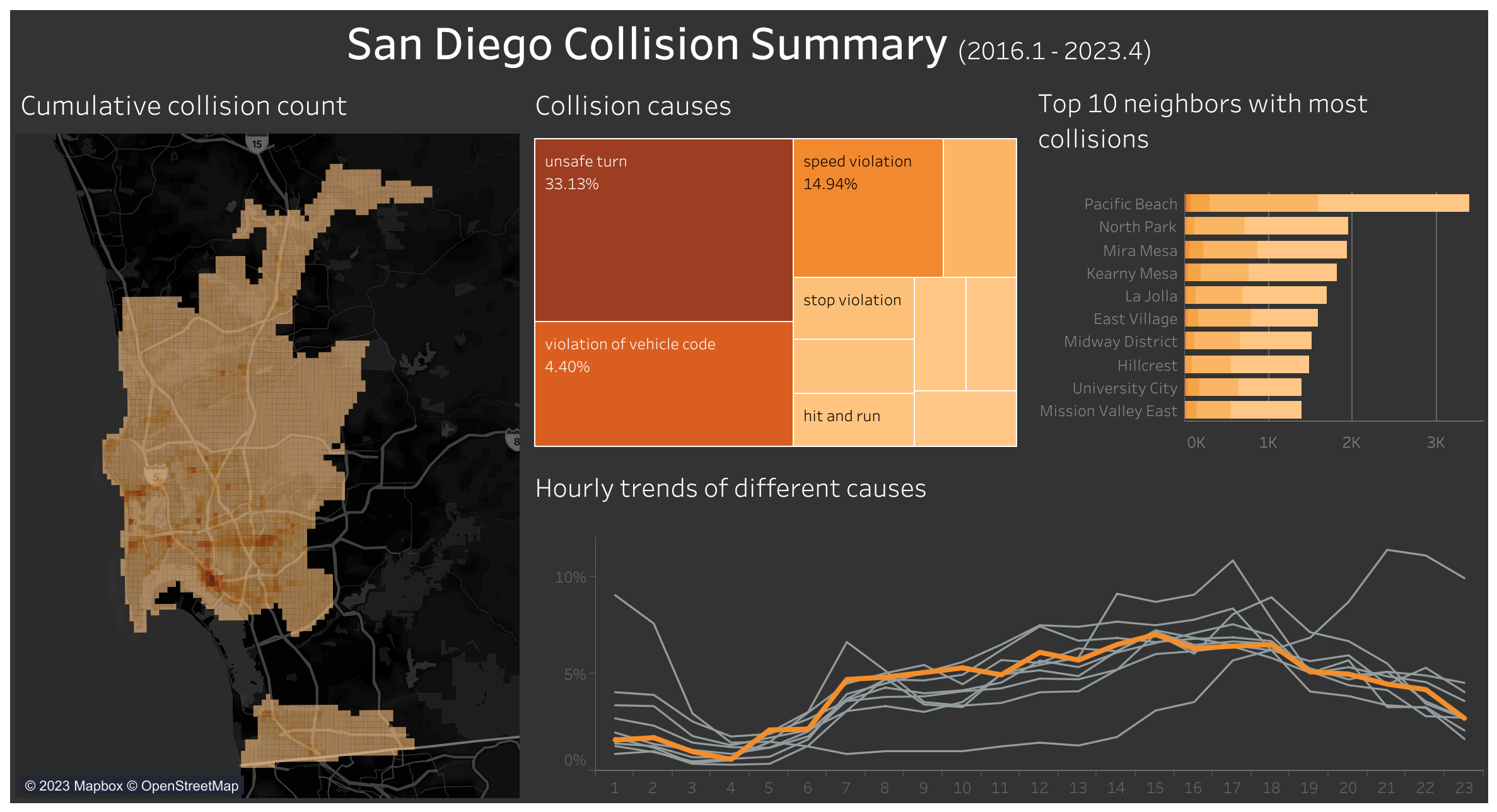 In Korea, car navigation systems notify drivers when they enter ‘accident-prone areas,’ helping them stay alert and avoid potential accidents. However, similar services are not commonly available in navigation systems in the US. As a result, I became curious about identifying accident-prone areas in San Diego to raise awareness when I drive in the future.